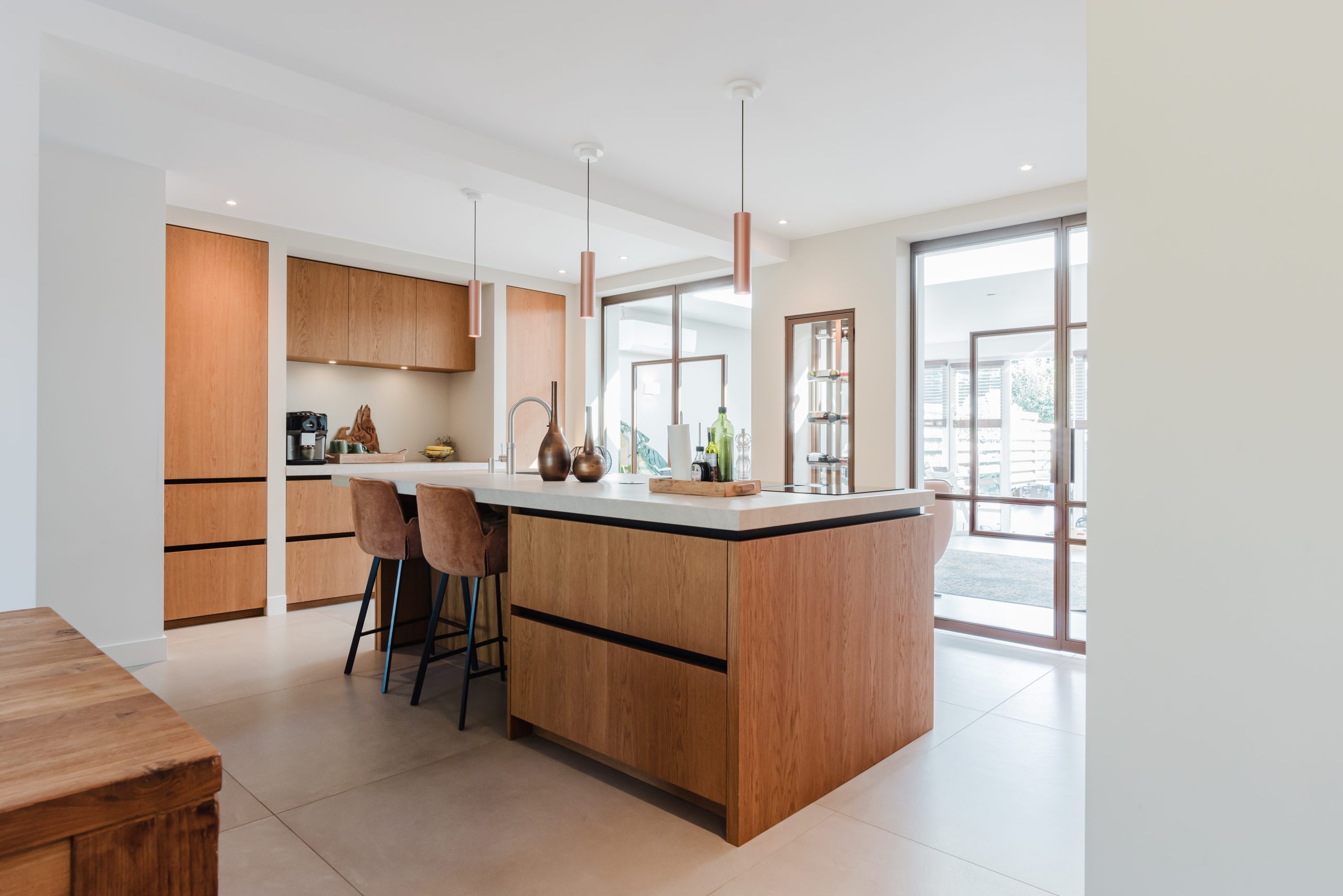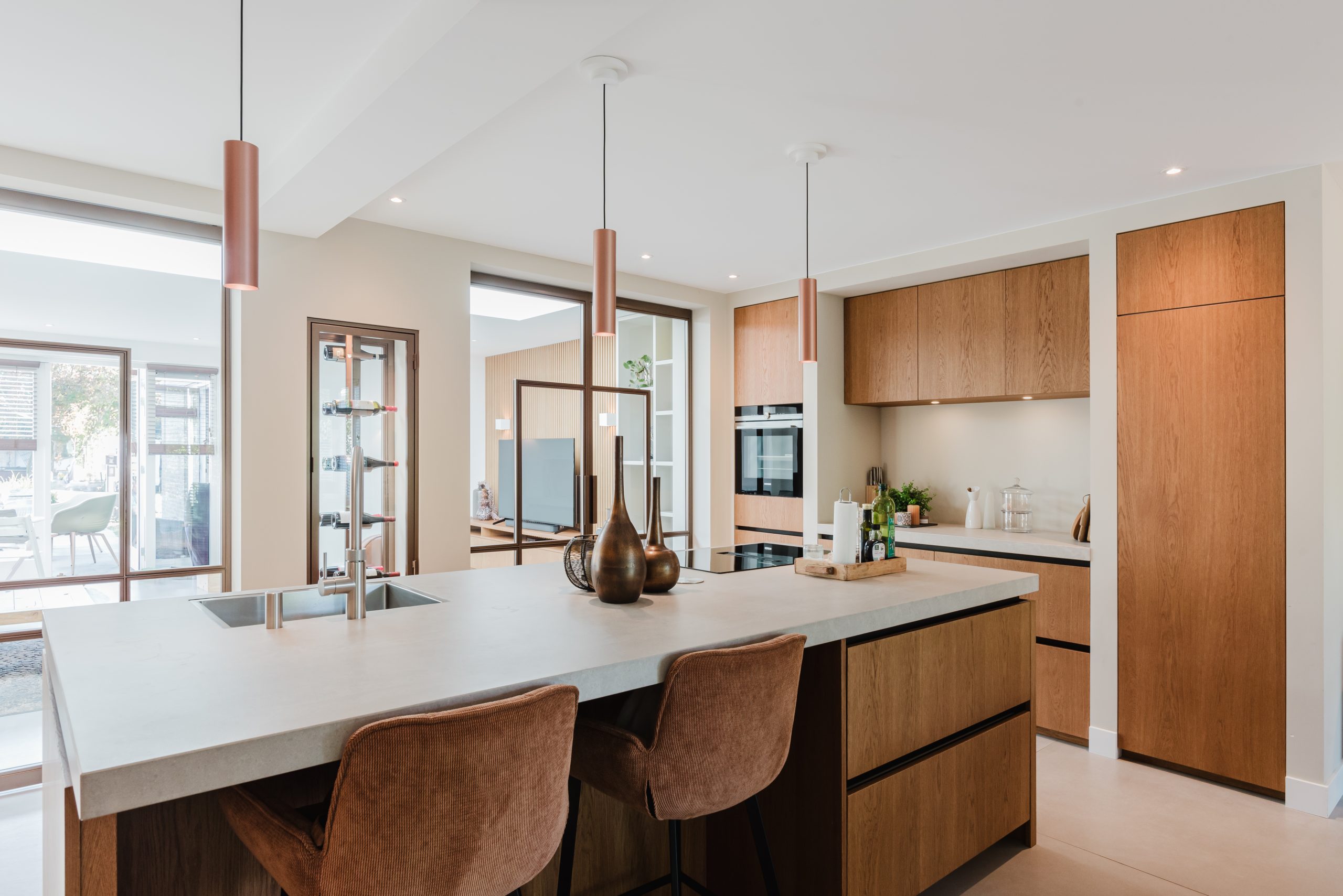 Ons team van specialisten begeleidt je van het eerste ontwerp tot de complete oplevering. We denken mee, adviseren waar nodig en zorgen dat jouw keuken niet alleen esthetisch, maar ook duurzaam en gebruiksvriendelijk is. Zo ontstaat er een keuken die jarenlang het middelpunt van jouw woning zal zijn.